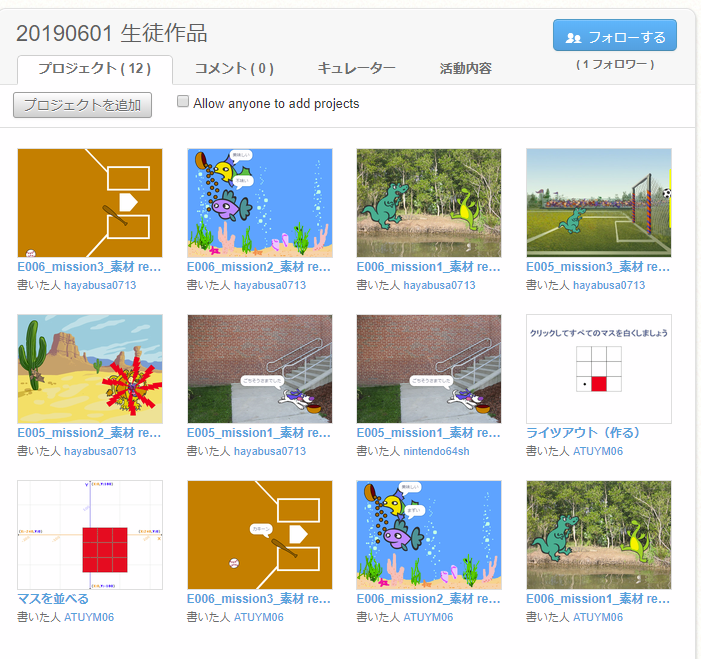 プログラミング道場 6月1日 2019 6/05 プログラミング教室 2019年6月5日 6月1日の授業の様子を動画にしています。 当日作った生徒作品集はこちらです。(Scratchへリンクします。) プログラミング教室 よかったらシェアしてね! URLをコピーしました! URLをコピーしました! そろばん塾ピコのお稽古 6月3日 習字の筆っこのお稽古 6月5日 この記事を書いた人 miyajuku 関連記事 プログラミング教育とは? 2021年12月14日 10月11日の授業 2021年10月11日 8月2日の授業 2021年8月2日 プログラミング教室の体験会をやります! 2021年6月9日 2021年度のプログラミング教室のチラシです 2021年6月9日 Minecraftカップ2020全国大会 最終審査会・表彰式 生配信動画 2021年2月20日 Minecraftカップ全国大会2020動画配信のリンクが発表されました! 2021年2月12日 快挙! miyajukuでプログラミングを学ぶ中2生がMINECRAFTカップのファイナリストに 2021年2月5日