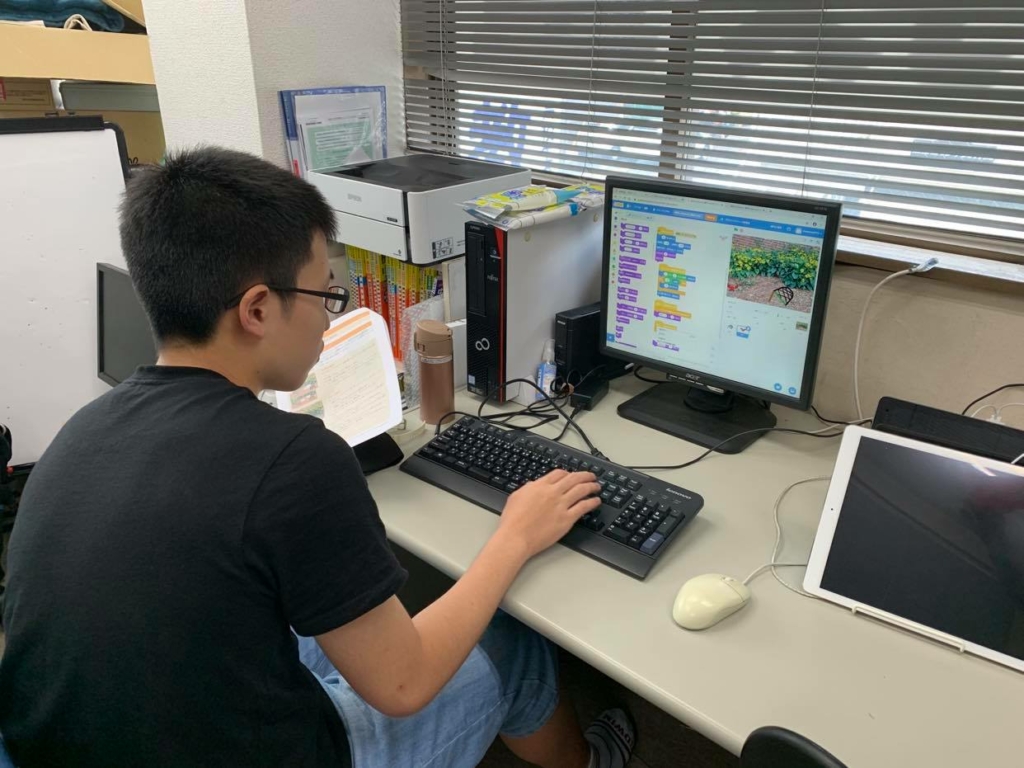 梅雨で雨ばかり続きますが、今日も元気にプログラミングの授業をしました。