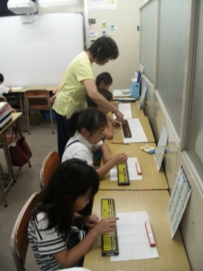 夏休みの前までは集中してそろばんに取り組んでいたのに、休みが明けてからまわりを気にして、手がたびたび止まってしまうようになっている子がいます。