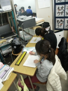 小2で9級以上の練習をしている生徒さんたちは、かけ算九九の「下敷き」を見ながらの練習になります。