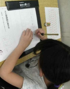 硬筆の授業では、平仮名がしっかりと書けるように指導しています。