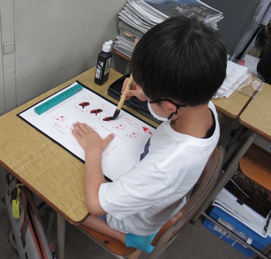 教室での授業再開から二回目で清書だったので少し苦戦している様でしたが、じっくりと時間をかけて一枚を書きあげました。
