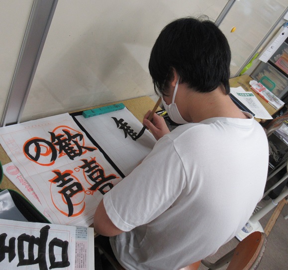 中学生の毛筆の授業も行いました。
