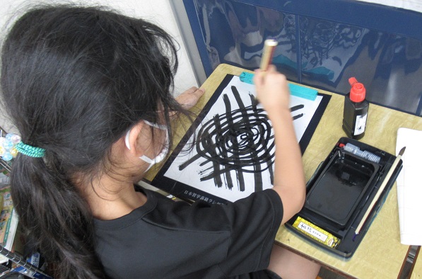 動画と手元の手本を見ながら、しっかりと筆を運ぶことが出来ました。