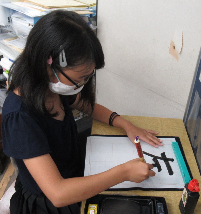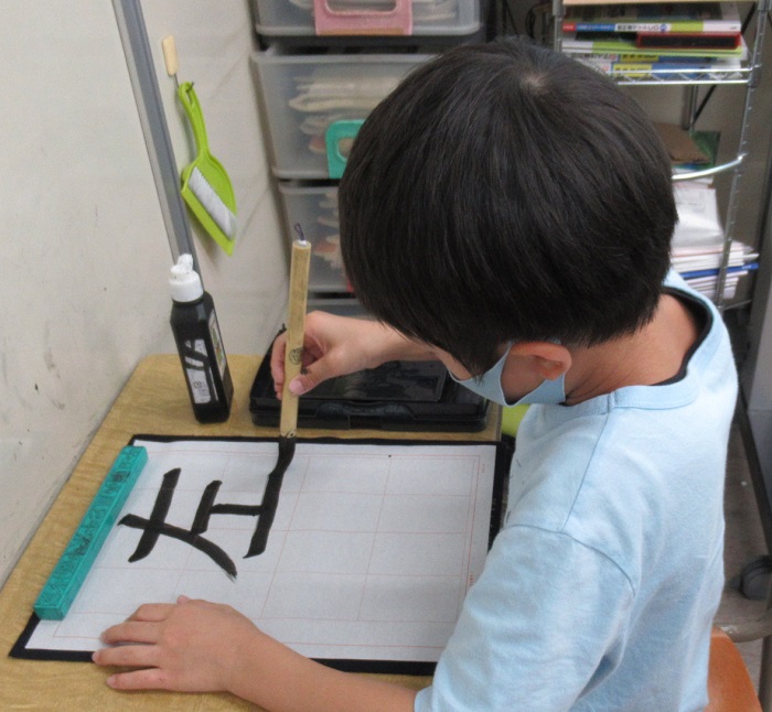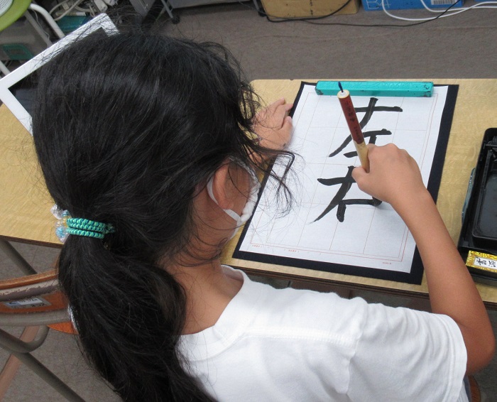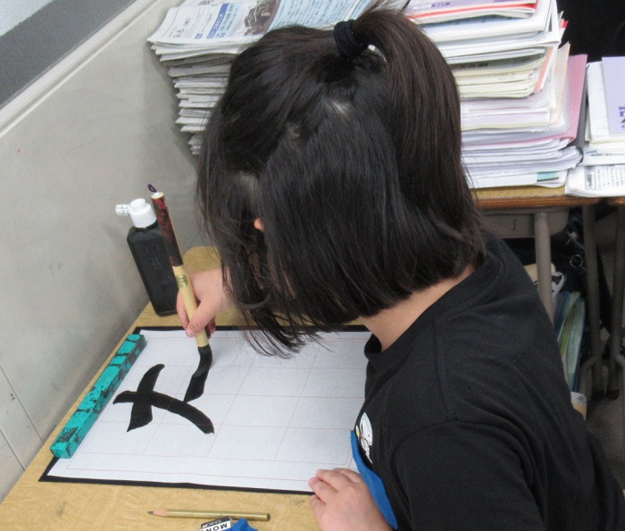 今日の授業は二回目の毛筆です。