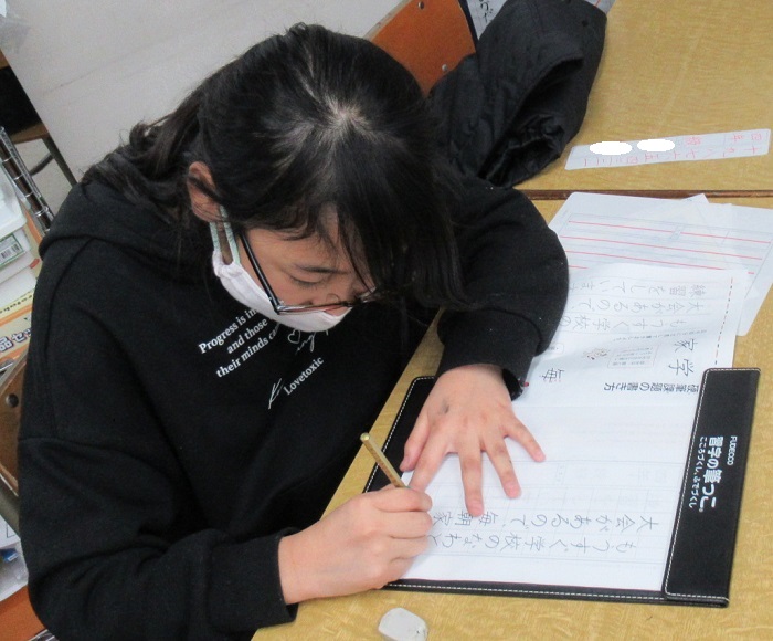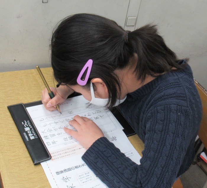 まずは課題をなぞります。なぞることによって、しっかりと文字の形・バランスを確認します。