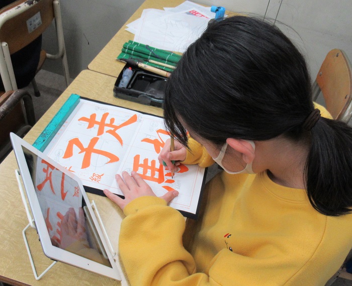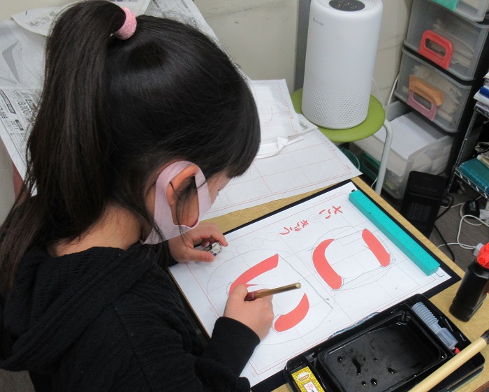 半紙に手本をなぞります。