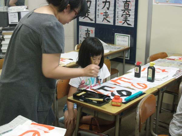 来週はおっきな半紙に書いていきます。今日はいつもの半紙に、1文字〜2文字ずつの練習をしていきました。