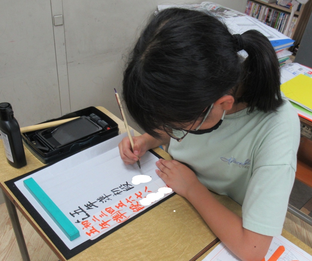 いよいよ清書の日がやってきました。 今回は条幅(長い紙)初挑戦の生徒さんも数名いましたが、皆慣れない紙に悪戦苦闘しながらも頑張りました! 中学生は昇段試験もあったので、今回は半紙を出品しました。 結果は約一か月後です。 楽しみですね(*^_^*) -