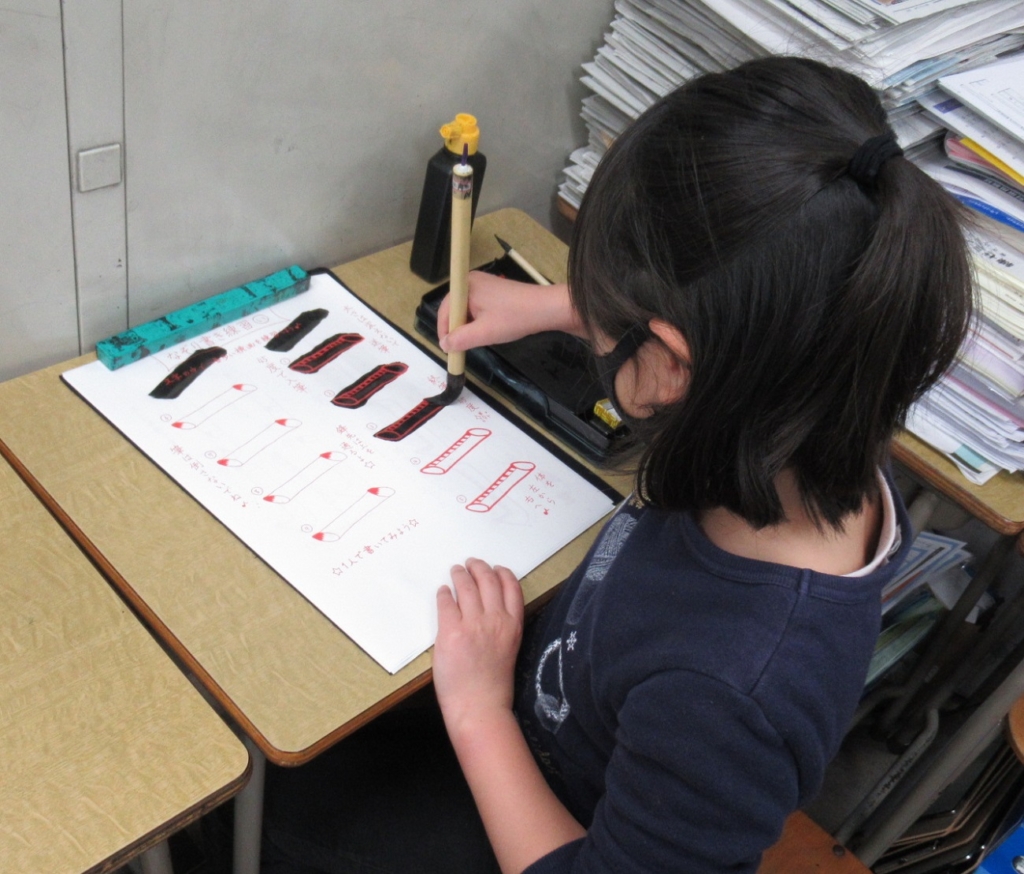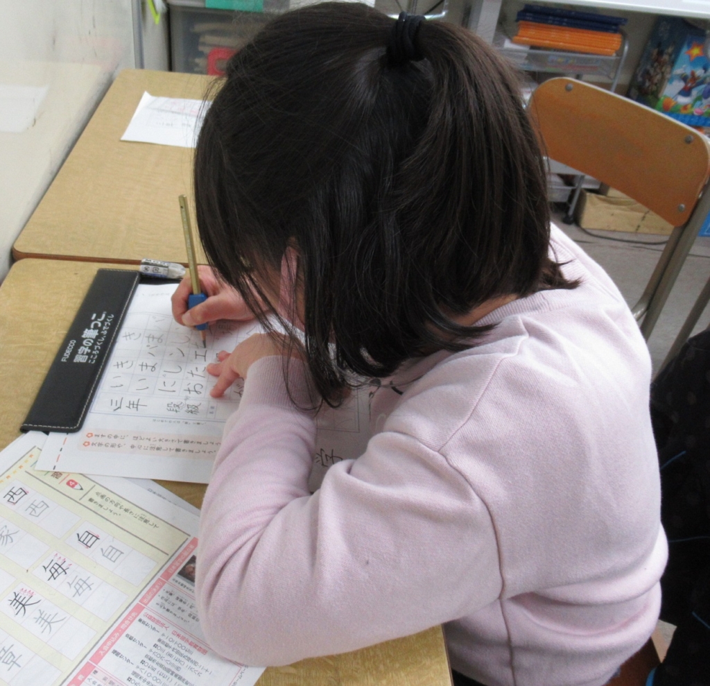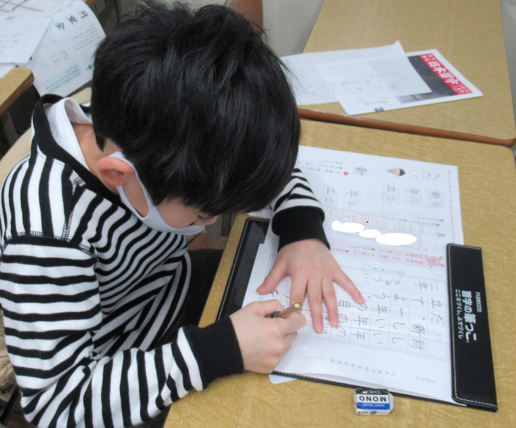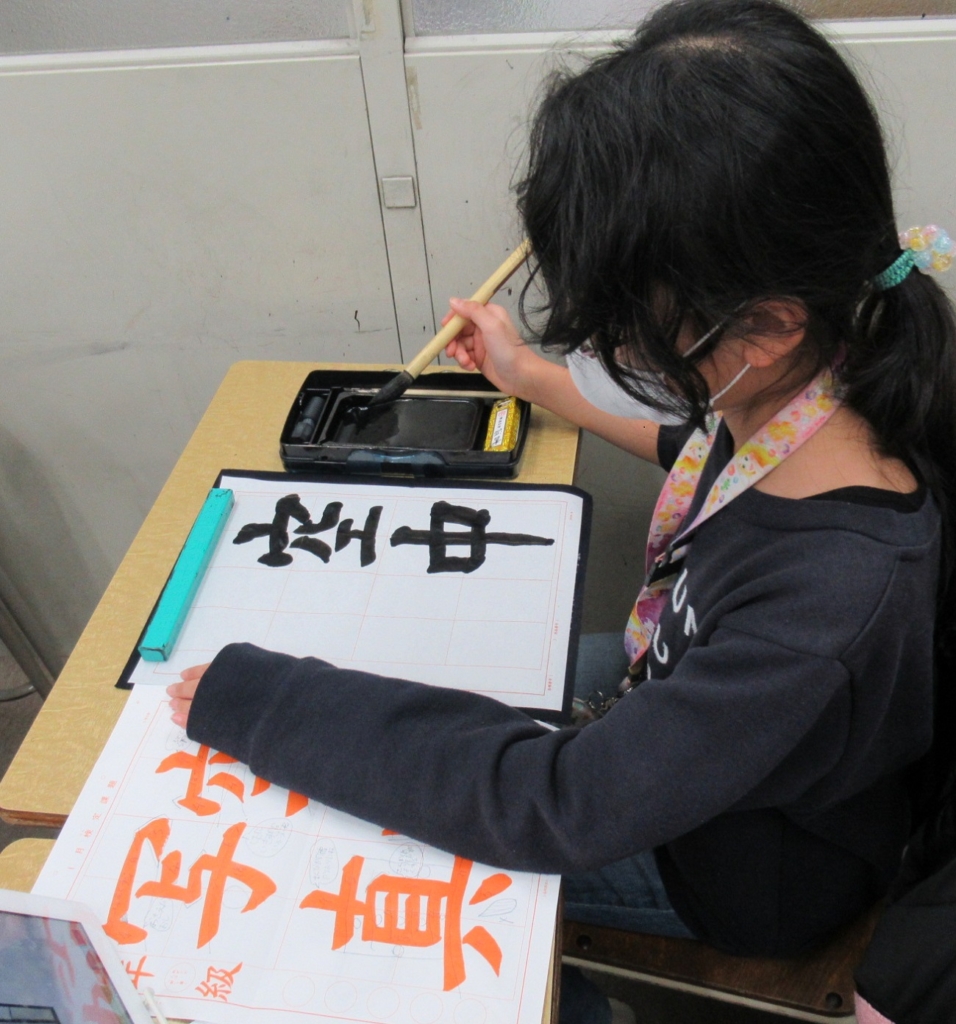 先週は手本に書き込みをし、自分だけの手本を作りました。 今週はそれを見ながら半紙に練習していきます。 気付いた事があれば、書き足していきます。 しっかりと字の確認が出来ました。 来週の清書も頑張りましょう。