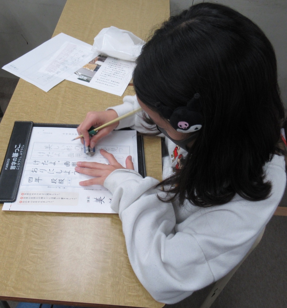 今日の授業は毛筆の清書です。 https://youtu.be/fuBC8CRzBkk https://youtu.be/etxRMjJ7bug 今月の課題は難しかったですが、皆きちんと文字を理解し書けていました(^^) 来週は硬筆です。 -