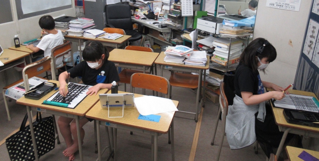 6月号の課題が戻ってきました。 6月号は難しかったので、毛筆の昇級者はいませんでした。 硬筆は二名の昇級でした。おめでとう! 今日の授業も毛筆です。 1枚書き終えたら 各自手本と見比べながら「1文字につき1つだけ」直すところを決め、計5枚書きまし... -