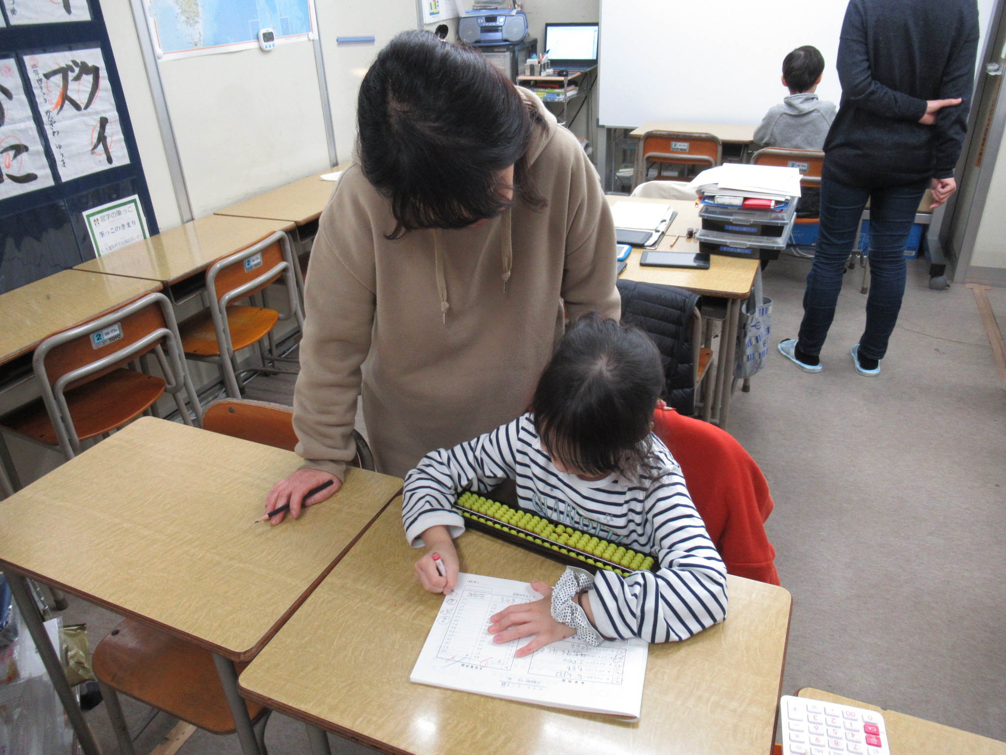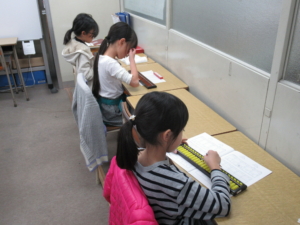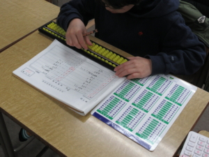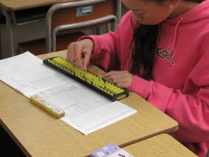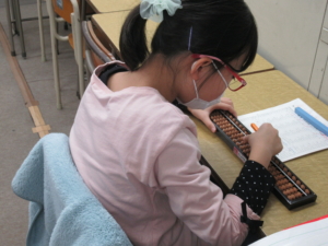 入会したばかりの生徒さんたちには「まず、左手でソロバンを持ちましょう」と徹底します。