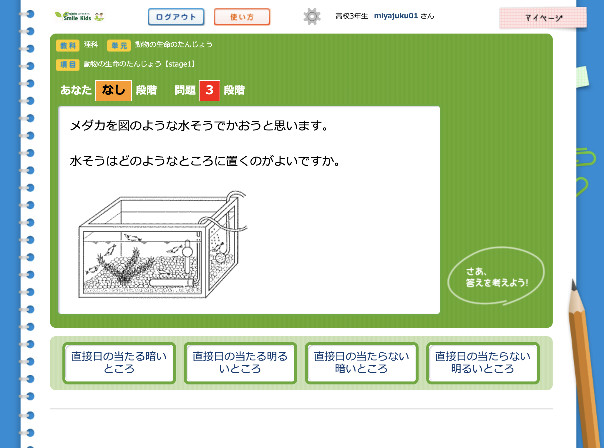スマイルキッズの各クラスに在籍する生徒さんの家庭学習支援のためにmiyajukuの家スタディシステムのうち「ビット・キャンパス」を無償で提供します。ビット・キャンパスは難易度別にドリル演習を進めていくICT教材です。IDとパスワード、使い方についてはLINE@でお問い合わせいただければすぐに発行させていただきます。ただし、小4から小6までです。