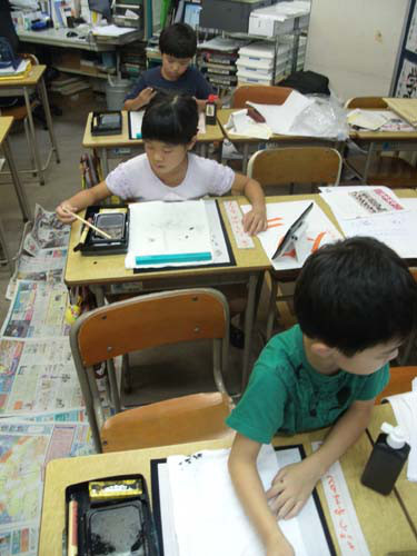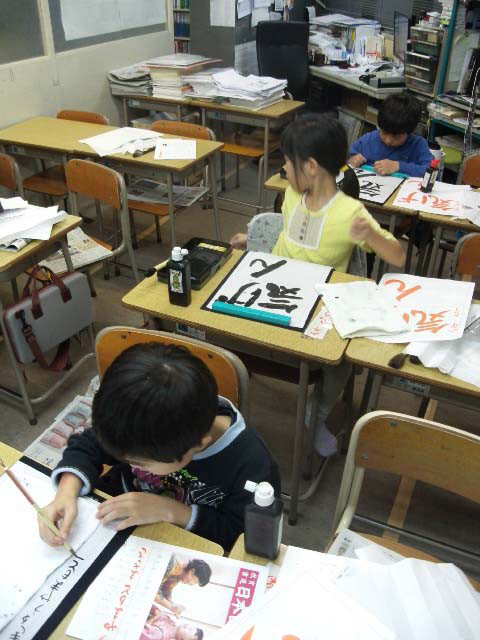 今日はちょっと早めですが、毛筆の清書でした。 1時間目のクラス 2時間目のクラス 3時間目のクラス -
