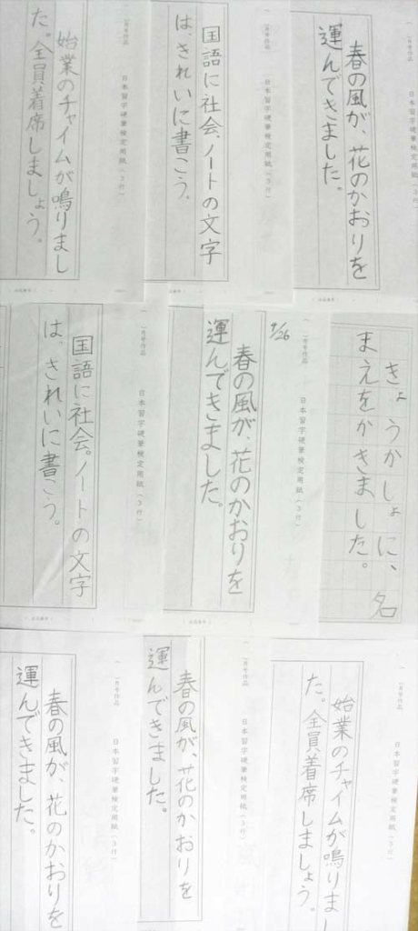 4月の課題が日本習字から戻ってきました。 10人中5人が進級。 みんなよくがんばりました。 新年度になってお手本の文字数が少なくなりましたが、かえって、一文字ずつの出不出来がはっきりして難しいかもしれません。 初心に... -
