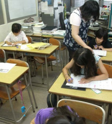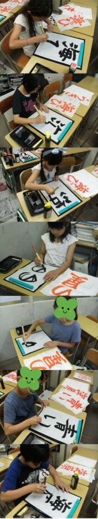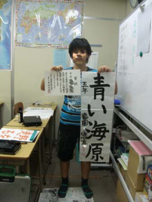 今日は8月の清書の日でした。みんな、しっかりと書けたかな? だんだんと「こだわり」が出てきて、自分が思うように書けないことにちょっといらだつことも。それだけ自分の書く「文字」に気持ちが入ってきたということです。 -