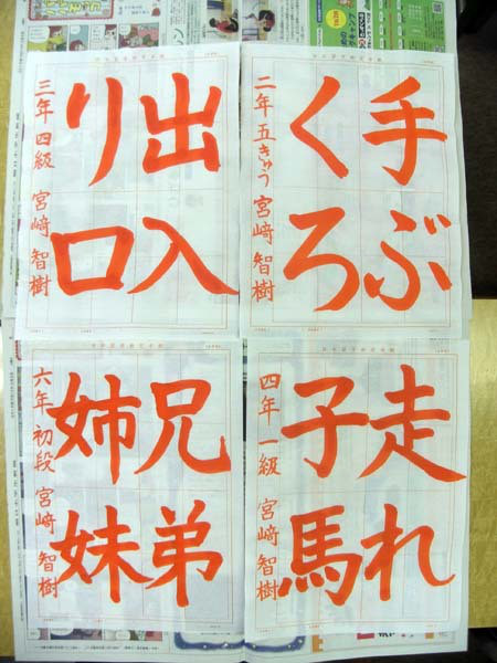 忙しくしていて、先月はお習字ができませんでした。今月の課題です。小6の2人は、1級と2級まで進級しました。小4の2人も2級と3級になっています。こつこつと積み上げていくことの大切さとおもしろさを感じてくれていればうれしいです。
