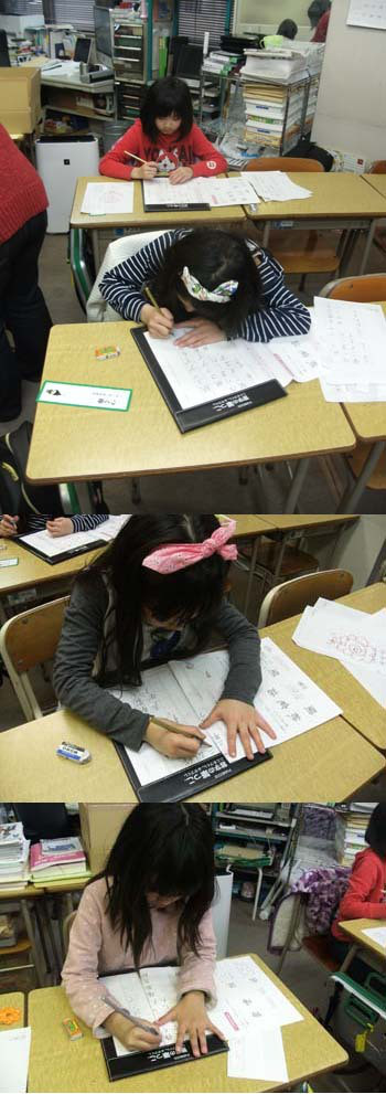 習字の筆っこは今年初めてのお稽古です。最初のお稽古では、今月の課題の文字と向き合います。DVDをしっかりとみながら、お手本に鉛筆で注意するところを書き込んでいきます。写真ではよくわかりませんが、3年生のSさんもびっしりと書き込んでいます。今日... -