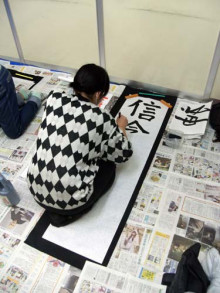 仕事納めです。イベントとして「学校の書き初めの宿題をやってしまおう」もおこなっています。教室の机をどかし、ビニールシートを敷いておこなっています。入れ替わり生徒たちがやってきて、書き初めを書いていきます。児玉先生がお手本を書いてきてくれ... -
