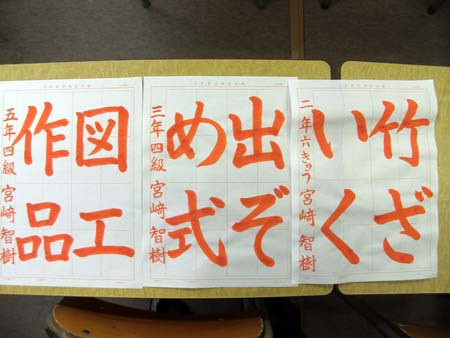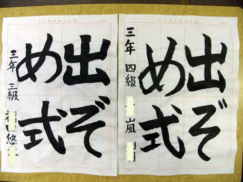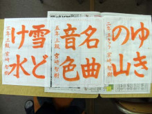 早いもので今日は一月の毛筆課題の清書の日です。3年生の2人が、上手に書けたのでネットにアップしてくれ、とのことでした。お母さんに見せたいのだそうです。12月の競書大会の賞状もみんなに渡しました。3年生の2人は銀賞だったこともあり、書くことが楽... -