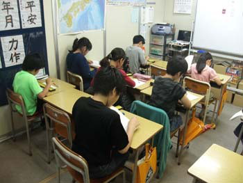 14日の検定試験に向けて受験する子たちは、しっかりと集中して問題に取り組んでいます。2年生で、まだ学校ではかけ算九九を習っていない子も、九九の下敷きを見ながら問題に取り組み、今日は満点をとりました。この調子で本番も頑張って下さい。 -